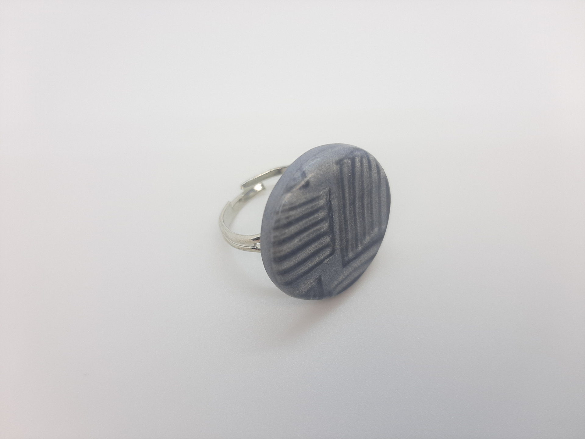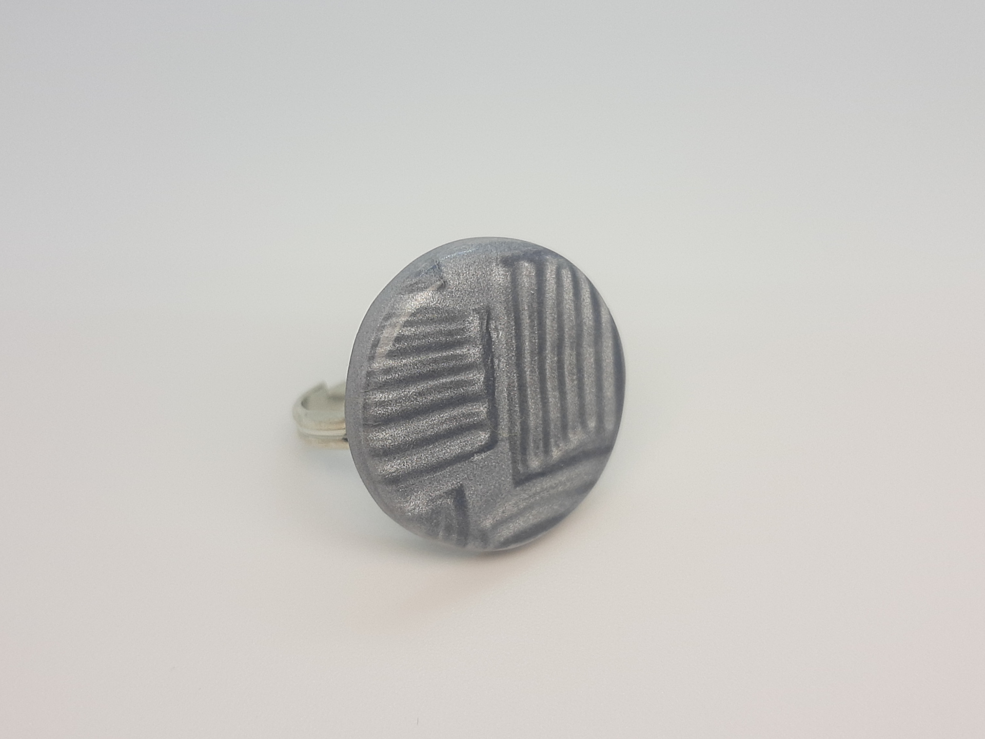 Anillo de 2,3 cm de diámetro , elaborado con la técnica mica shift y arcilla metalizada, que hace que adquiera ese falso relieve y textura..