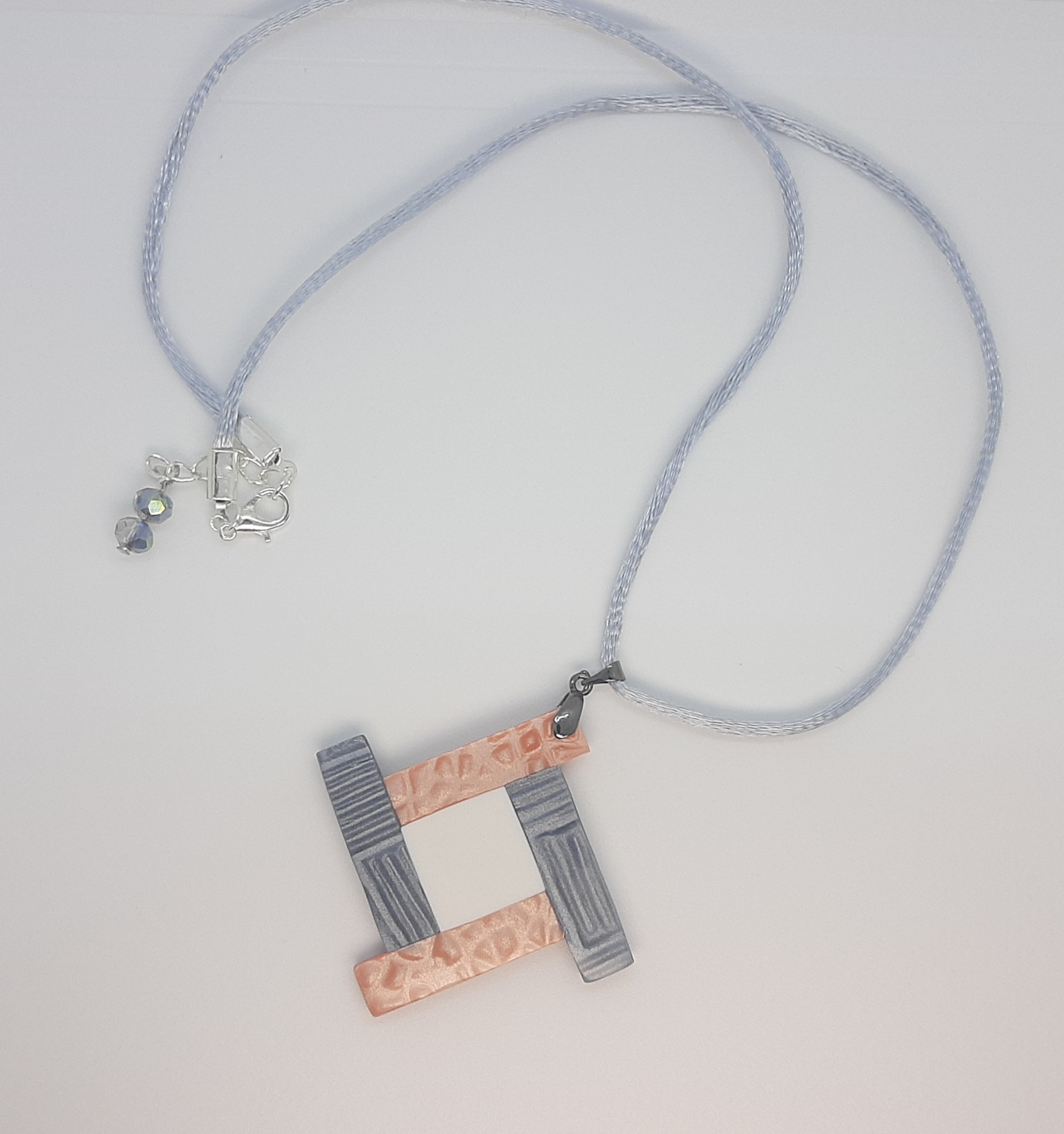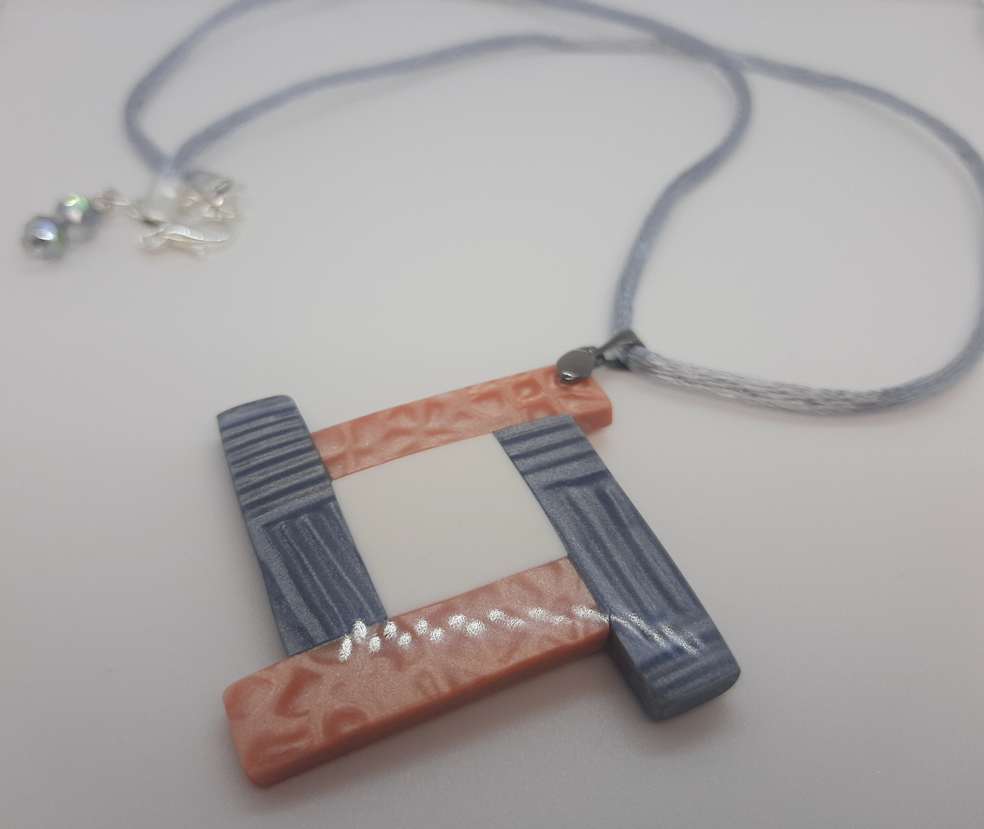 Colgante de 5,5 x 5,5 cm, elaborado con la técnica mica shift que genera ese efecto de falso relieve en la pieza.
