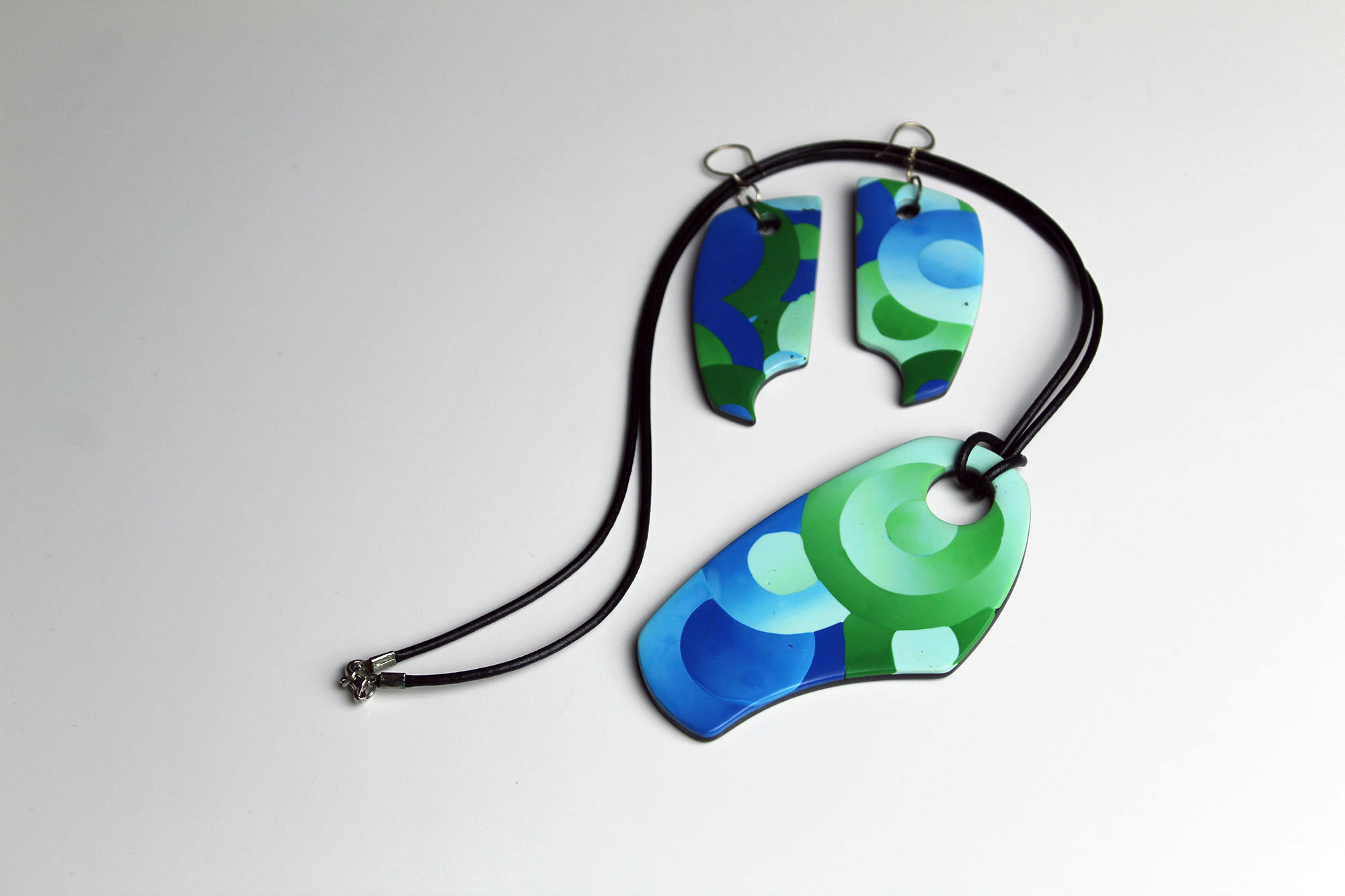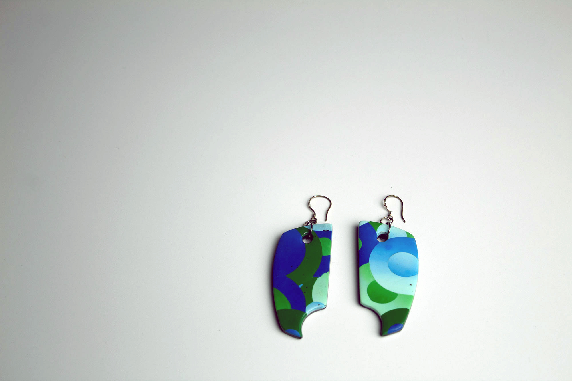 Pendientes de 5 x 2,5 cm, elaborados con la técnica del degradado haciendo efecto de ondas en la pieza.