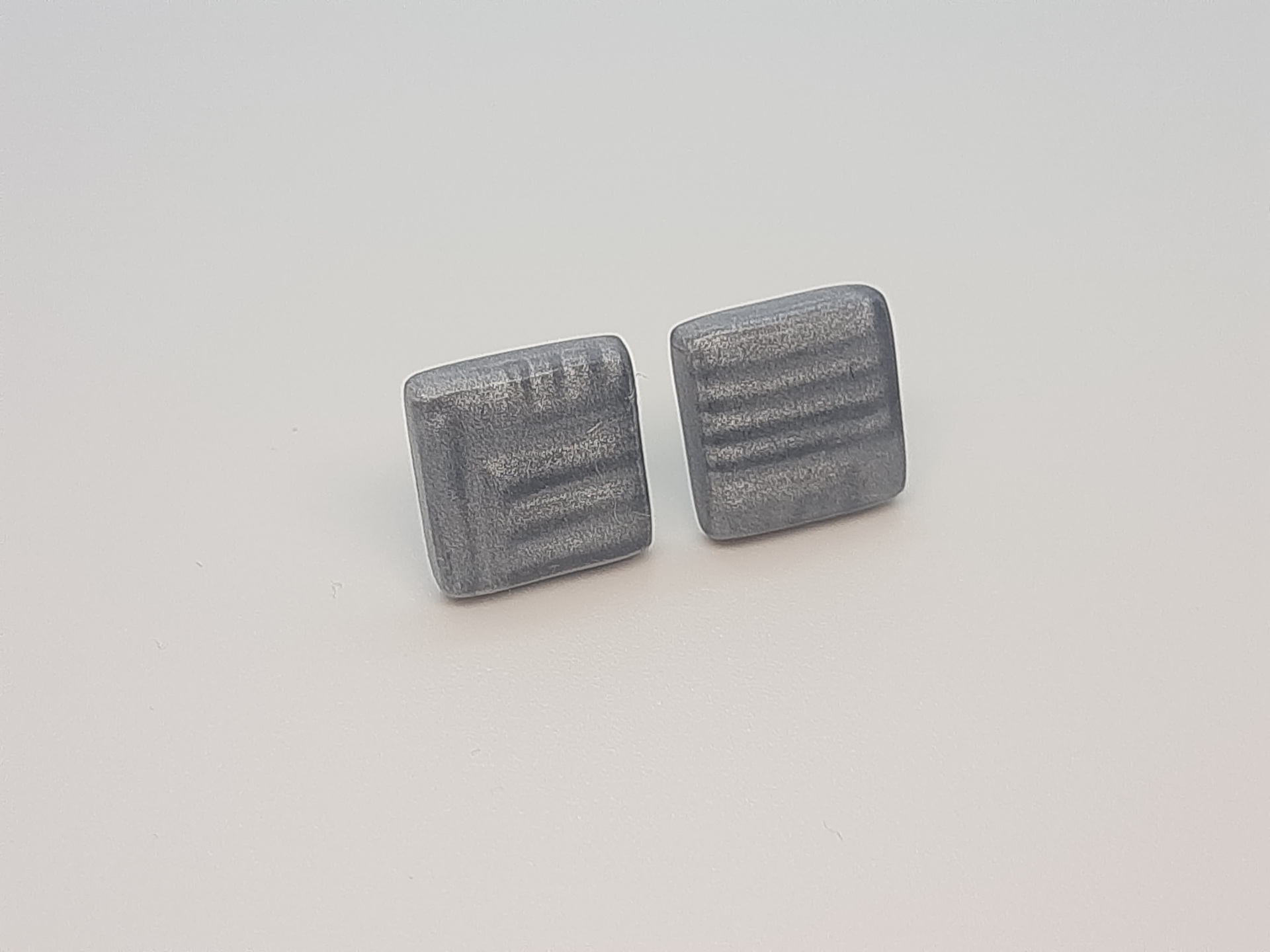 Pendientes de 1 cm, elaborados con la técnica mica shift y arcilla metalizada, que hace que adquieran ese falso relieve y textura.